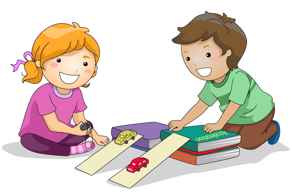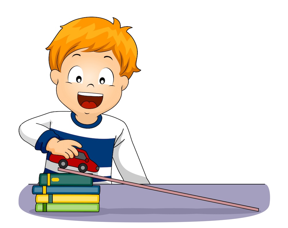 Your child might experiment with two different objects at the same incline or the same object at a range of different heights.